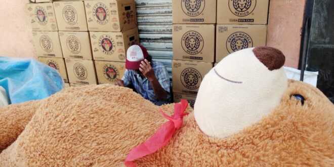 Antonio es pepenador, y en la cacería del reciclaje, hoy sábado, se encontró con un gigantesco peluche que le servirá para alegrar el alma de algún ser querido.