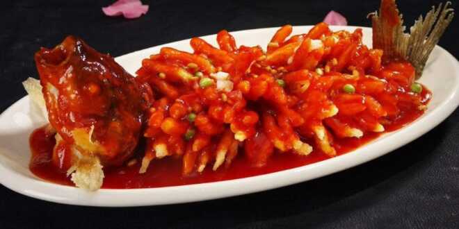 Por lo regular, en las mesas de celebración chinas el pescado se sirve entero, al vapor o frito, aderezado con vinagres, salsa de soya o agridulce, chiles y complementado con coles y otras verduras.