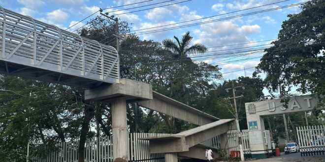 Este día fueron colocadas las rampas de ambos lados del puente peatonal de avenida Universidad, frente a la UJAT; dicha estructura es mayormente usada por estudiantes y trabajadores de la máxima casa de estudios, quienes han pedido a las autoridades acelerar los trabajos para poder cruzar de forma más segura la avenida.