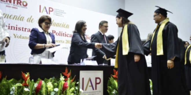 El Instituto de Administración Pública de Tabasco (IAP) en coordinación con el Ayuntamiento de Centro, llevaron a cabo este viernes la ceremonia de graduación de la Maestría en Administración y Políticas Públicas, Generación Mtra. Yolanda Osuna Huerta 2021-2024.