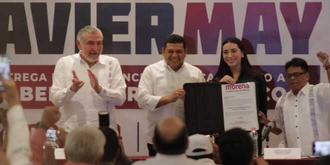 El consejo Estatal de Morena hizo entrega ayer de la constancia como candidato a la gubernatura de Tabasco a Javier May Rodríguez, en un evento al que asistió el Consejero Nacional, Adán Augusto López Hernández.