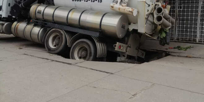 Fue hace más de 30 días que se hundió un camión tipo Vactor –que se encontraba realizando trabajos en la zona- en este gigante socavón, y actualmente se ha ido agravando el problema, por lo que los colonos exigen una pronta solución.