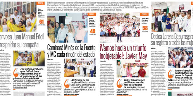 Este fin de semana se concretaron los registros de los cuatro aspirantes a la gubernatura del estado ante el Instituto Electoral y de Participación Ciudadana de Tabasco (IEPC), cuyo consejo estatal habrá de evaluar que cumplan con los requisitos y, en su caso, declararlos procedentes para contender en el proceso electoral local 2023-2024.