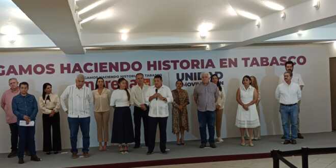 Equipo de campaña del candidato Javier May Rodríguez. Son siete mujeres y siete hombres quienes tendrán la tarea de una integración con los sectores productivos.