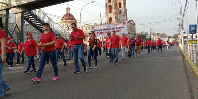 El contingente partió del cobertizo de la Sección 44 del STPRM que se ubica sobre avenida Periférico Carlos Pellicer, en la colonia Tamulté de las Barrancas, y recorrió varios kilómetros antes de congregarse frente al hospital regional de Pemex Villahermosa. El secretario general de esa sección, José Zamudio Aguilera, dijo que la principal denuncia de la clase trabajadora es la falta de recursos para el área médica y a la vez convocó a minuto de silencio por las más de dos mil 500 personas que dijo, han muerto en ese hospital, entre los que contabilizó a los que fallecieron por la aplicación de heparina sódica contaminada y los que perdieron la vida durante la pandemia de la covid-19.