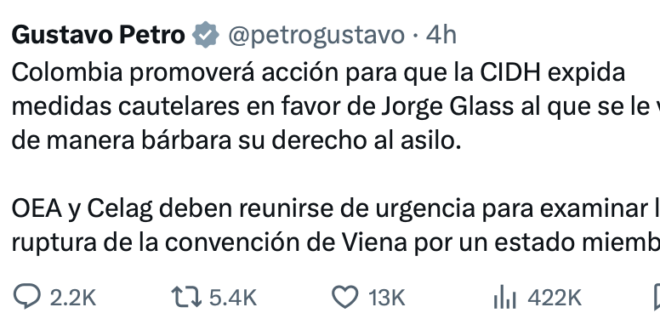 El secretario general de la Organización de los Estados Americanos (OEA), Luis Almagro, instó a México y Ecuador a entablar un «diálogo» y anunció que solicitará una reunión del Consejo Permanente del organismo para abordar las tensiones entre ambos países.