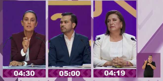 En el desarrollo del primer debate presidencial convocado por el INE, la representante del PRI-PAN-PRD, Xóchitl Gálvez Ruiz, en algunos momentos secundada por Jorge Máynez, de MC, enfiló sus acusaciones contra Claudia Sheinbaum, candidata de Morena, quien respondió a los señalamientos y destacó su proyecto de nación.