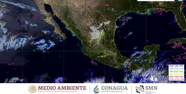 Para el Pacífico Sur se prevé cielo medio nublado, ambiente matutino templado en gran parte de la región y fresco con bancos de niebla en zonas serranas de Oaxaca y Chiapas, así como ambiente de muy caluroso a extremadamente caluroso por la tarde. Se prevé viento de componente sur de 10 a 25 km/h, con rachas de 50 a 70 km/h en el Istmo de Tehuantepec, Oaxaca, y de dirección variable de 40 a 60 km/h en Guerrero y Chiapas.