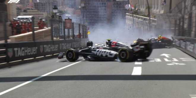 En la subida desde Santa Devota al Casino, Magnussen embistió por detrás al RB20 del mexicano, que a su vez tocó el Haas de Hülkenberg. El coche de ‘Checo’, subcampeón del mundo el año pasado y que afrontaba la carrera en el tercer puesto del Mundial, quedó completamente destrozado, aunque el bravo piloto tapatío salió del mismo por su propio pie y se encuentra bien, al igual que los dos integrantes de la escudería Haas.