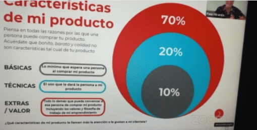 Subrayó que existen cuatro pilares de comunicación en el emprendimiento: información, datos curiosos, importantes o relevantes de tu producto; entretenimiento, experiencias que permitan a otras personas identificarse con tu producto; emocional, contenido dirigido a generar empatía de parte de otra persona; y promoción, todo lo relacionado a tu producto y cómo le servirá a tu clientela.