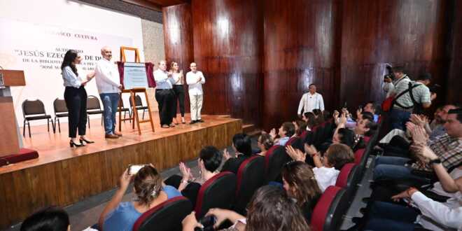 “Me da mucho gusto estar aquí en este espacio rescatado, en esta parte del hermosísimo conjunto CICOM, del teatro y, sobre todo, de la gran biblioteca, maravillosa biblioteca que tenemos el honor de contar con ella para disfrute de todos, porque es un espacio grandioso que debemos de aprovechar y agradecer por tenerlo”, subrayó.
