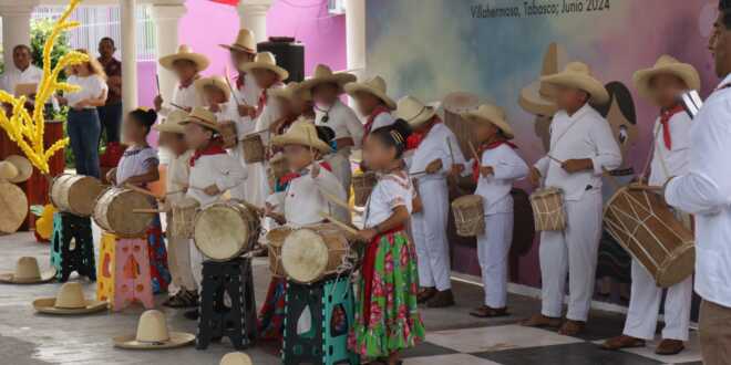 La presidenta del Sistema DIF Tabasco Guadalupe Castro de Merino, encabezó este martes la demostración del trabajo que se realiza en los 6 Centros de Atención Infantil (CAI), para enseñar y preservar la esencia musical y cultural milenaria de Tabasco.