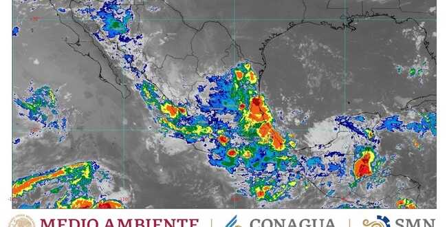 Hoy, se pronostica que canales de baja presión extendidos sobre la Sierras Madre Occidental y Madre Oriental, aunado al ingreso de humedad del Océano Pacífico y Golfo de México, inestabilidad en niveles altos de la atmósfera, así como otro canal de baja presión sobre la Península de Yucatán y el sureste de México, en interacción con la onda tropical número 4 ocasionarán lluvias torrenciales (de 150 a 250 milímetros [mm]) en Colima, Jalisco y Michoacán e intensas (de 75 a 150 mm) en Chiapas Durango, Guanajuato, Guerrero, Morelos, Nayarit, San Luis Potosí, Sinaloa, Oaxaca, Puebla y Veracruz.