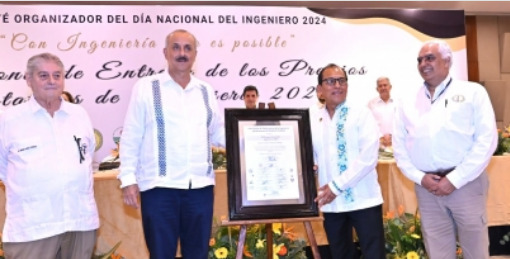 Acompañado de Enrique Dagdug Contreras, presidente del Comité Organizador del Día del Ingeniero y presidente del Colegio de Ingenieros Civiles de Tabasco, el jefe del Ejecutivo distinguió las trayectorias de los profesionales Víctor Hugo Pérez Olade y Héctor Antonio García Mora, así como de Rafael Eduardo Rubio Quintero, a quien el gremio otorgó un reconocimiento de forma póstuma.