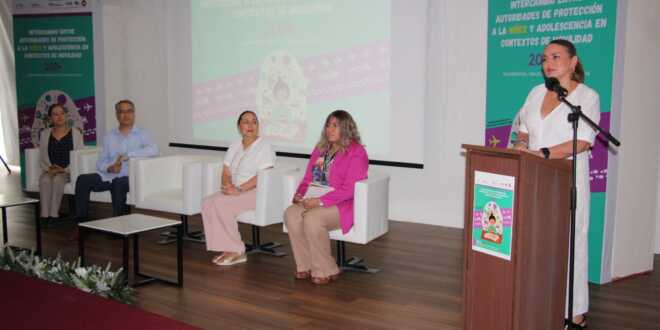 En el evento, que tuvo la finalidad de propiciar un espacio de intercambio sobre necesidades identificadas y buenas prácticas, en la implementación de la Ruta de Protección Integral de los Derechos de Niñas, Niños y Adolescentes en situación de migración, Castro de Merino afirmó que el intercambio de experiencias contribuirá al fortalecimiento de esa ruta, que se está implementando desde los SIPINNA, en cada uno de los estados.