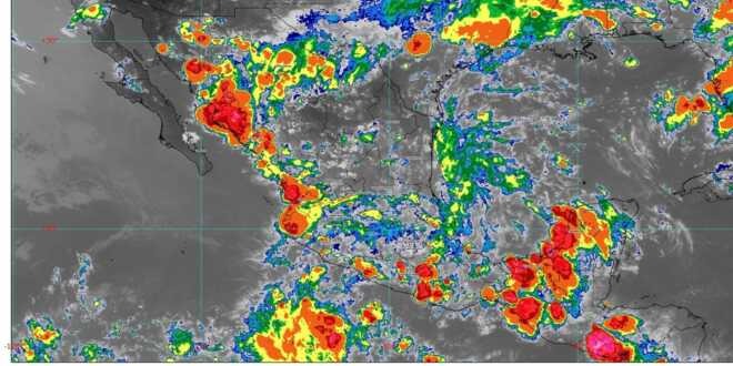 En las próximas horas, un canal de baja presión sobre el occidente y centro de México y el paso de la onda tropical número 12 por el Pacífico central mexicano, originarán lluvias intensas (de 75 a 150 milímetros [mm]) en Colima, Estado de México, Guerrero, Jalisco, Michoacán, Nayarit y Puebla; lluvias muy fuertes (de 50 a 75 mm) en la Ciudad de México, Guanajuato y Morelos, y lluvias fuertes (de 25 a 50 mm) en Hidalgo, Querétaro y Tlaxcala.