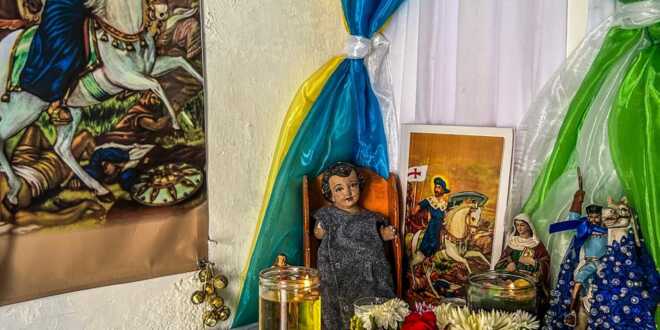 Una familia del Barrio Mágico, en el Centro de Villahermosa, hace los preparativos para ofrecer un rezo en honor a su santo patrono, San Santiago.