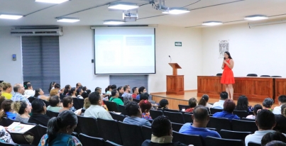 Acto seguido, Alexia Lizama Orosco, Nutrióloga y Educadora en Diabetes, presentó el tema: «Despertar con Rybelsus y alimentación saludable», a los asistentes al auditorio de la División Académica de Ciencias de la Salud de la UJAT.