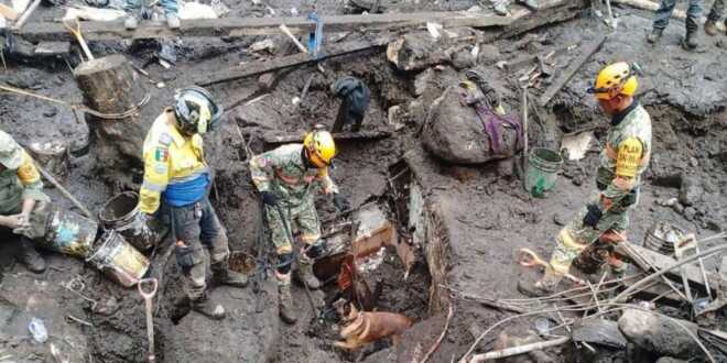 En el lugar trabajan seis máquinas de excavación que han removido decenas de toneladas de lodo y escombros tras el deslave del cerro al tiempo que casas y negocios del lugar han sido evacuados como medida de prevención.