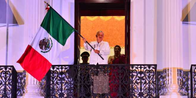 En la noche más mexicana del año, y luego de la verbera popular organizada la Secretaría de Cultura, el jefe del Ejecutivo replicó lo que hizo el cura Miguel Hidalgo la madrugada del 16 de septiembre, haciendo sonar la campana ubicada en lo alto de la sede del Poder Ejecutivo.
