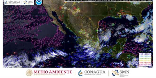 Para este martes se pronostican lluvias puntuales intensas (de 75 a 150 milímetros [mm]) en regiones de Chiapas, Guerrero, Oaxaca, Tabasco y Veracruz; muy fuertes (de 50 a 75 mm) en zonas de Campeche, Estado de México, Guanajuato, Hidalgo, Michoacán, Morelos, Puebla, Querétaro y Yucatán; fuertes (de 25 a 50 mm) en sitios de Aguascalientes, Ciudad de México, Colima, Jalisco, Nuevo León, Quintana Roo, San Luis Potosí, Tamaulipas, Tlaxcala y Zacatecas; intervalos de chubascos (de 5 a 25 mm) en Coahuila, Durango y Nayarit, así como lluvias aisladas (de 0.1 a 5 mm) en Baja California, Chihuahua y Sonora. Las lluvias podrán estar acompañadas de descargas eléctricas, rachas fuertes de viento y caída de granizo.