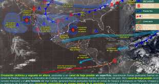 En la península de Yucatán se prevé, en la mañana, cielo medio nublado y ambiente templado, con bancos de niebla en el sureste de Campeche y suroeste de Quintana Roo; durante la tarde, se espera ambiente de cálido a caluroso, cielo nublado y viento del noreste de 15 a 30 km/h, con rachas de 40 a 60 km/h en la región.