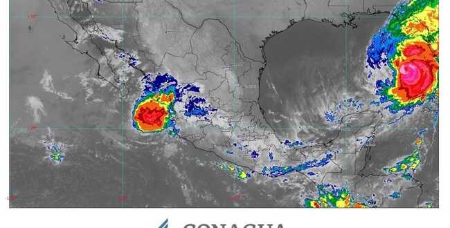 Hoy, se esperan lluvias puntuales muy fuertes (de 50 a 75 milímetros [mm]) en Guerrero y Oaxaca; fuertes (de 25 a 50 mm) en Chiapas, Colima, Jalisco, Michoacán y Nayarit; intervalos de chubascos (de 5 a 25 mm) en Baja California Sur, Campeche, Estado de México, Durango, Morelos, Quintana Roo, Puebla, Sinaloa, Sonora, Tabasco, Veracruz, Yucatán y Zacatecas, y lluvias aisladas (de 0.1 a 5 mm) en Aguascalientes, Chihuahua, Ciudad de México, Guanajuato y Tlaxcala.