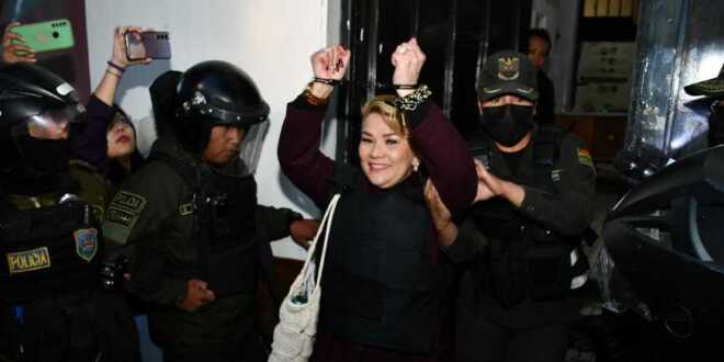 Áñez, quien está recluida en la cárcel de mujeres de Miraflores desde marzo de 2021, fue llevada con un chaleco antibalas. Al llegar al juzgado, sonrió a los medios de comunicación y, mostrando sus esposas, aseguró que su gobierno no fue un golpe de Estado, sino el resultado de un fraude electoral.