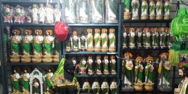 Miles de imágenes de diversos tamaños, souvenirs, ropa y una notable saturación en las áreas de restauradores de imágenes se pueden observar en este centro de abasto, a tan solo unos días de la celebración de San Judas Tadeo.