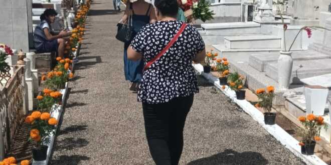 En el Panteón Central familias enteras visitan y llevan flores a sus seres queridos que ya partieron, mientras que en el mercado de Tamulté de las Barrancas se intensifica la venta de hojas de plátano, zempasuchil y otras flores para llevar a las tumbas.