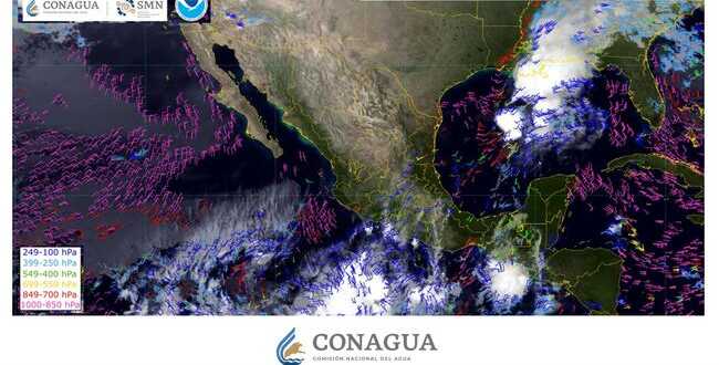 Por otra parte, se prevé viento de componente sur con rachas de 50 a 70 kilómetros por hora (km/h) en el istmo de Tehuantepec y el sur de Veracruz, y rachas de 40 a 60 km/h en el golfo de California, Campeche, Quintana Roo y Yucatán, con posibles tolvaneras en Baja California, Baja California Sur, Chihuahua, Coahuila, Nuevo León, San Luis Potosí y Sinaloa, además de oleaje de 1 a 3 metros (m) de altura en la costa occidental de la península de Baja California, y en los litorales de Colima, Jalisco y Michoacán.
