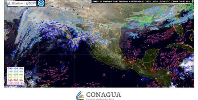 A su vez, la corriente el chorro subtropical que se desplaza sobre el noroeste, norte y noreste del territorio nacional generará viento de 15 a 25 km/h con rachas de 40 a 60 km/h en el golfo de California y Puebla, y con posibles tolvaneras en Chihuahua, Coahuila, Durango, Hidalgo, Nuevo León, San Luis Potosí y Sonora.