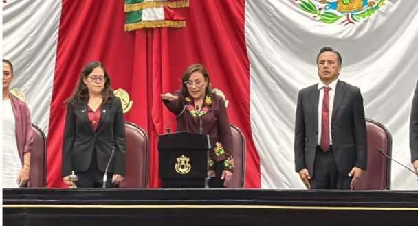 Conforme a lo establecido en el Artículo 45 de la Constitución local y en presencia de la presidenta de la República, Claudia Sheinbaum Pardo, y la vicepresidenta de la Cámara de Diputados, Dolores Padierna Luna, por primera vez una mujer emanada de la izquierda asumió la más alta responsabilidad en la entidad.