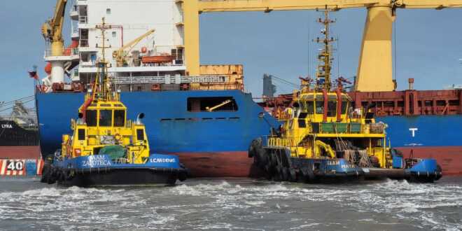 Tras el incidente, cuatro remolcadores maniobraron para reacomodar el barco en el muelle uno, donde se encontraba.