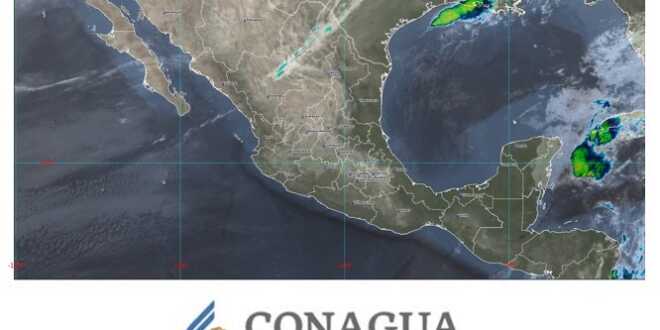 Por otra parte, el frente número 18, que se mantendrá con características de estacionario sobre el noreste del territorio nacional, en interacción con la corriente en chorro polar; un canal de baja presión frente a las costas de Quintana Roo, y el ingreso de humedad del mar Caribe, océano Pacífico y golfo de México, originarán intervalos de chubascos (de 5 a 25 milímetros [mm]) en Campeche, Chiapas, Quintana Roo y Yucatán, y lluvias aisladas (de 0.1 a 5 mm) en Oaxaca, Tabasco, Tamaulipas y Veracruz.