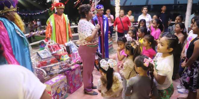 Desde las primeras horas del día, la presidenta honoraria del DIF Municipal, Mtra. Citlalli Aridet Correa Villamayor, y la presidenta municipal, Mtra. María Soledad Villamayor Notario, acompañaron a los Reyes Magos, entregando juguetes, rompiendo piñatas y realizando actividades diseñadas para alegrar a todos los pequeños asistentes.