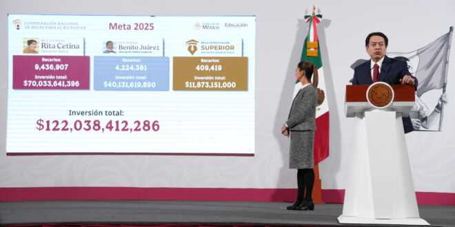 El secretario de Educación, Mario Delgado, detalló que el programa contempla una inversión de 122 mil millones de pesos, destinada a beneficiar a millones de estudiantes mediante recursos educativos y tarjetas de apoyo.