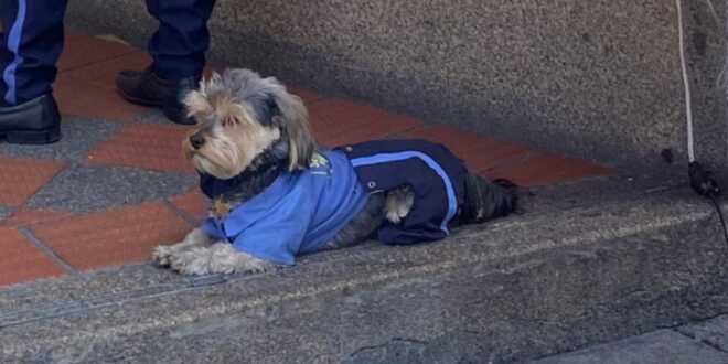 Si bien hasta el momento se sabe que el oficio de su dueño sería el de un vigilante, se aprecian unos pantalones azul marino con una raya más clara, además de una camisa azul cielo. Este uniforme, según se alcanza a ver, fue hecho a medida para que el can luciera igual que su dueño y si bien las fotos que existen no dejan ver mas que las piernas del hombre, podemos confirmar que los looks son iguales.
