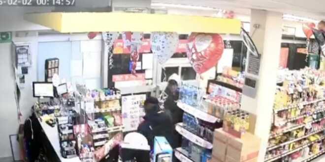En el video compartido en las redes sociales se observa cuando pasada la medianoche del domingo 2 de febrero, todo parecía ir normal dentro de la tienda que aunque atiende las 24 horas del día, por la madrugada cierra sus puertas para despachar a los clientes en la calle. En ese momento se ve a un automóvil llegar.