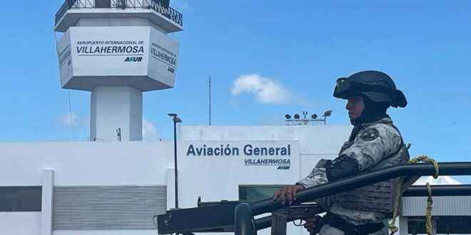A las 9:00 horas de ayer, un avión tipo Hércules de la Guardia Nacional aterrizó en el Aeropuerto Internacional de Villahermosa, transportando a los 300 elementos de la Sedena para reforzar las labores de seguridad en la entidad.