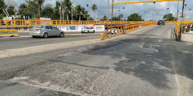 Ubicado sobre la carretera Villahermosa-Nacajuca, a la altura de Pomoca, presenta desgaste en su carpeta asfáltica, corrosión en sus barandales y falta de luminaria.