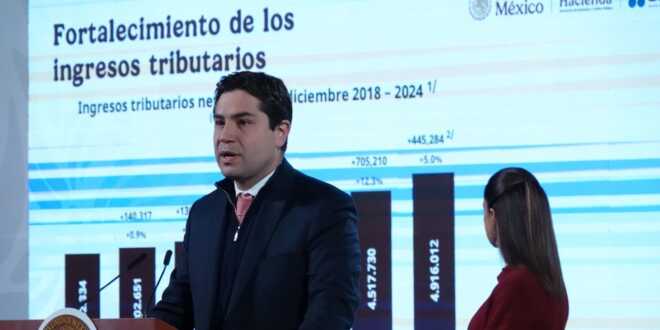 Antonio Martínez, director general del Servicio de Administración Tributaria (SAT), informó sobre los ingresos del gobierno federal en enero de 2025, destacando un total de 575,234 millones de pesos recaudados, la cifra más alta en los últimos años.