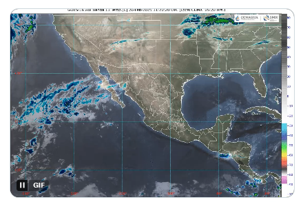 En el transcurso del día, se prevé ambiente de cálido a caluroso en la mayor parte de México, con temperaturas máximas por la tarde de 40 a 45 grados Celsius en Guerrero; de 35 a 40 grados en Sinaloa, Coahuila, Nuevo León, San Luis Potosí, Tamaulipas, Nayarit, Jalisco, Colima, Michoacán, Querétaro, Hidalgo, Morelos, Oaxaca, Chiapas, el