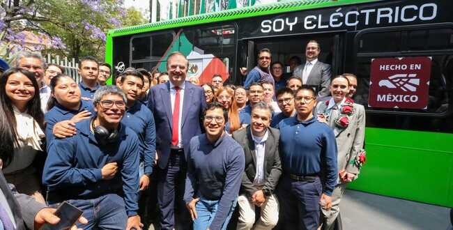 El secretario de Economía, Marcelo Ebrard, entregó hoy el distintivo Hecho en México a Taruk, autobús eléctrico diseñado y fabricado en nuestro país por la empresa Megaflux.