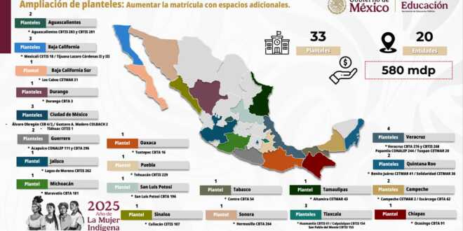 Mario Delgado recalcó que se invertirán 580 millones de pesos en las obras de ampliación y mejora en planteles de Aguascalientes, Michoacán, Jalisco, Sinaloa, Oaxaca, Tamaulipas, Quintana Roo, Guerrero, Baja California Sur, Durango, San Luis Potosí, Baja California, Tlaxcala, Chiapas, CDMX y Tabasco.