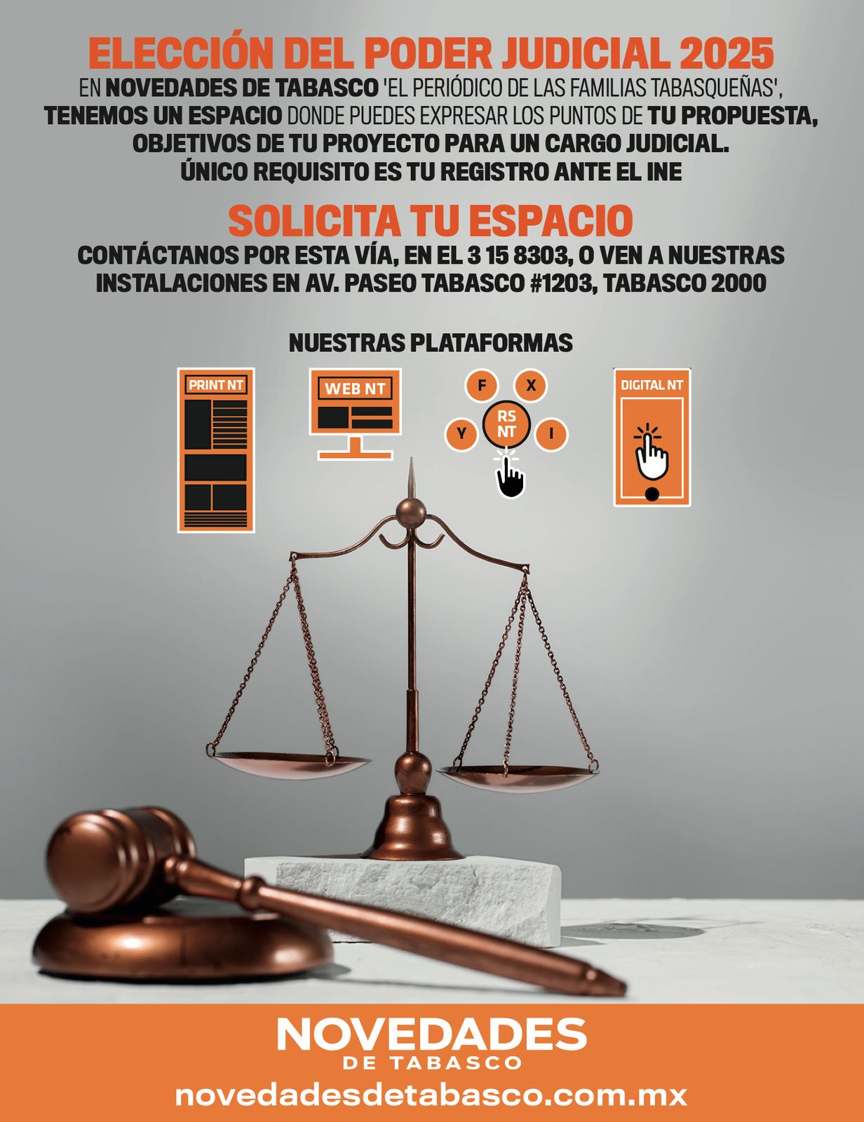 Novedades de Tabasco ofrece espacios para entrevistar a candidatas/os a cargos judiciales.