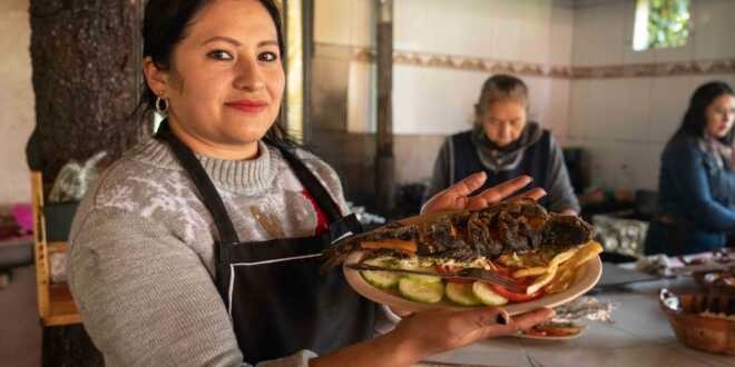 En este lugar también se puede disfrutar de una variedad gastronómica de platillos que tienen como ingrediente principal a este pescado, pues se encuentra el restaurante “La trucha loca y su sazón”. Aquí, también colabora Bibiana y nos ofrece truchas empapeladas, que van rellenas de champiñón, huitlacoche, flor de calabaza, rajas, papas y jamón con tocino a la mexicana. Todas llevan queso y se preparan con cebolla, con epazote y con mantequilla para degustar todo su sabor.