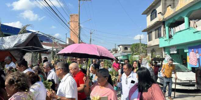 Cientos habitantes se dieron cita desde tempranas horas para recibir la bendición de las palmas y el agua, acto que se realiza como un gesto de fe y recuerdo de la entrada de Jesús en Jerusalén.