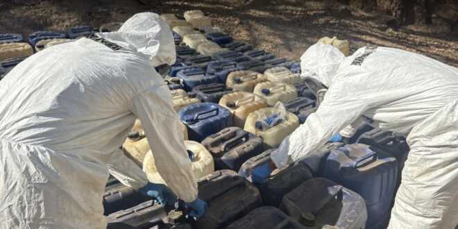• También se aseguraron 11,850 litros y 360 kilos de sustancias químicas