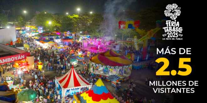 Tras 11 días de fiesta, algarabía y jolgorio, la Feria Tabasco 2025 “La Fiesta del Pueblo” recibió a más de 2.5 millones de visitantes, logrando un récord de asistencia sin precedentes, y dejó una derrama económica de más de 844 millones de pesos, beneficiando en su mayoría a comerciantes tabasqueños.